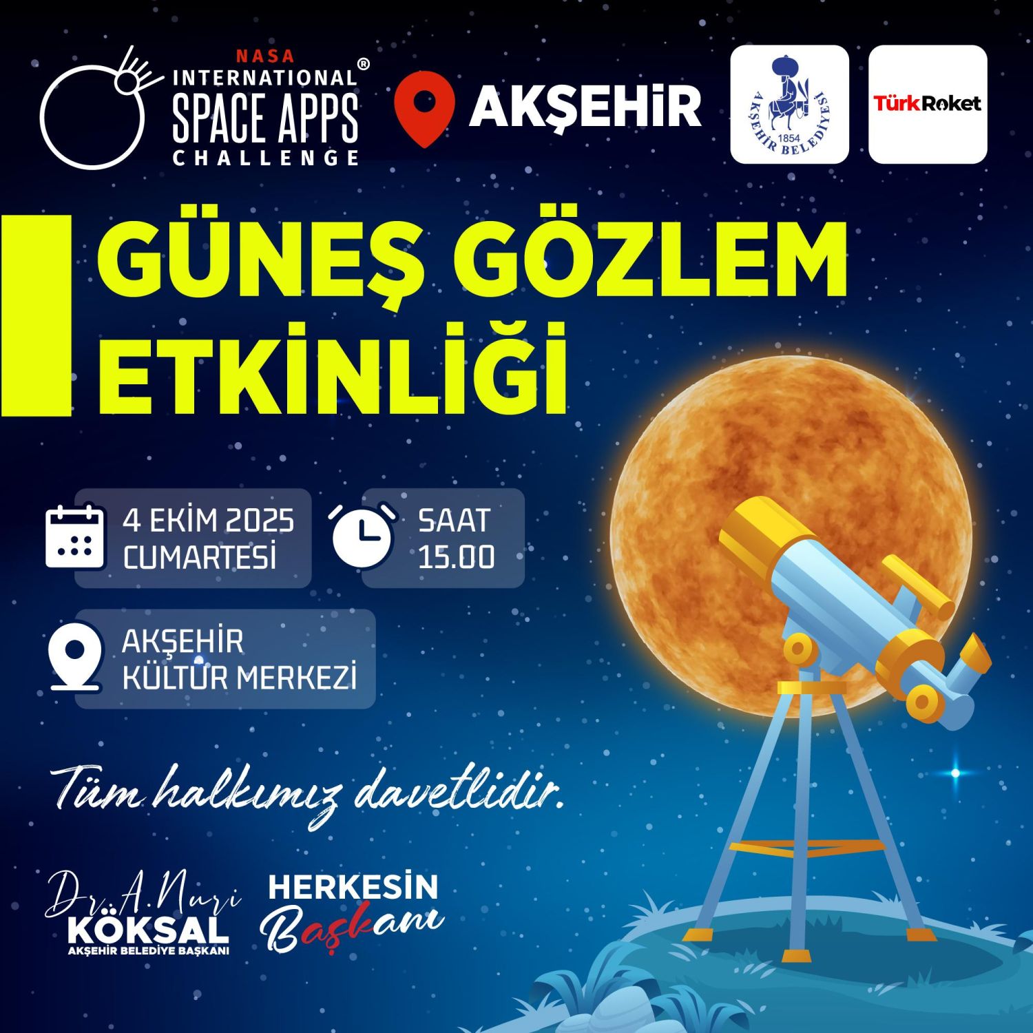 Akşehir, bu yıl dünyanın en büyük bilim ve teknoloji hackathonlarından biri olan NASA International Space Apps Challenge’a ev sahipliği yapıyor. Akşehir Belediyesi’nin stratejik partnerliğiyle gerçekleşecek etkinlik, 3-5 Ekim 2025 tarihlerinde düzenlenecek.