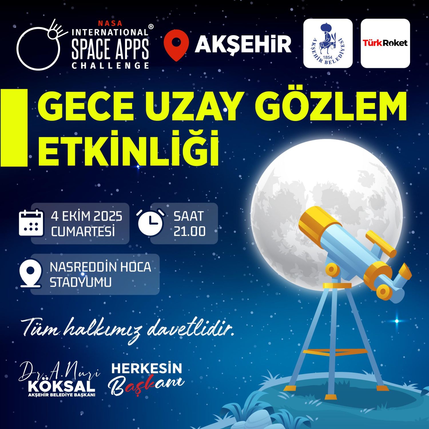 Akşehir Belediye Başkanı Dr. Ahmet Nuri Köksal, etkinliğe ilişkin yaptığı açıklamada, “Bilim, teknoloji ve uzay alanındaki en büyük uluslararası organizasyonlardan birine Akşehir’de ev sahipliği yapıyor olmaktan gurur duyuyoruz. Bu etkinlik, gençlerimize ilham verecek, onların ufkunu genişletecek önemli bir buluşma olacak. Bilime, gökyüzüne ve teknolojiye meraklı tüm hemşehrilerimizi NASA International Space Apps Challenge’a bekliyoruz.” dedi.