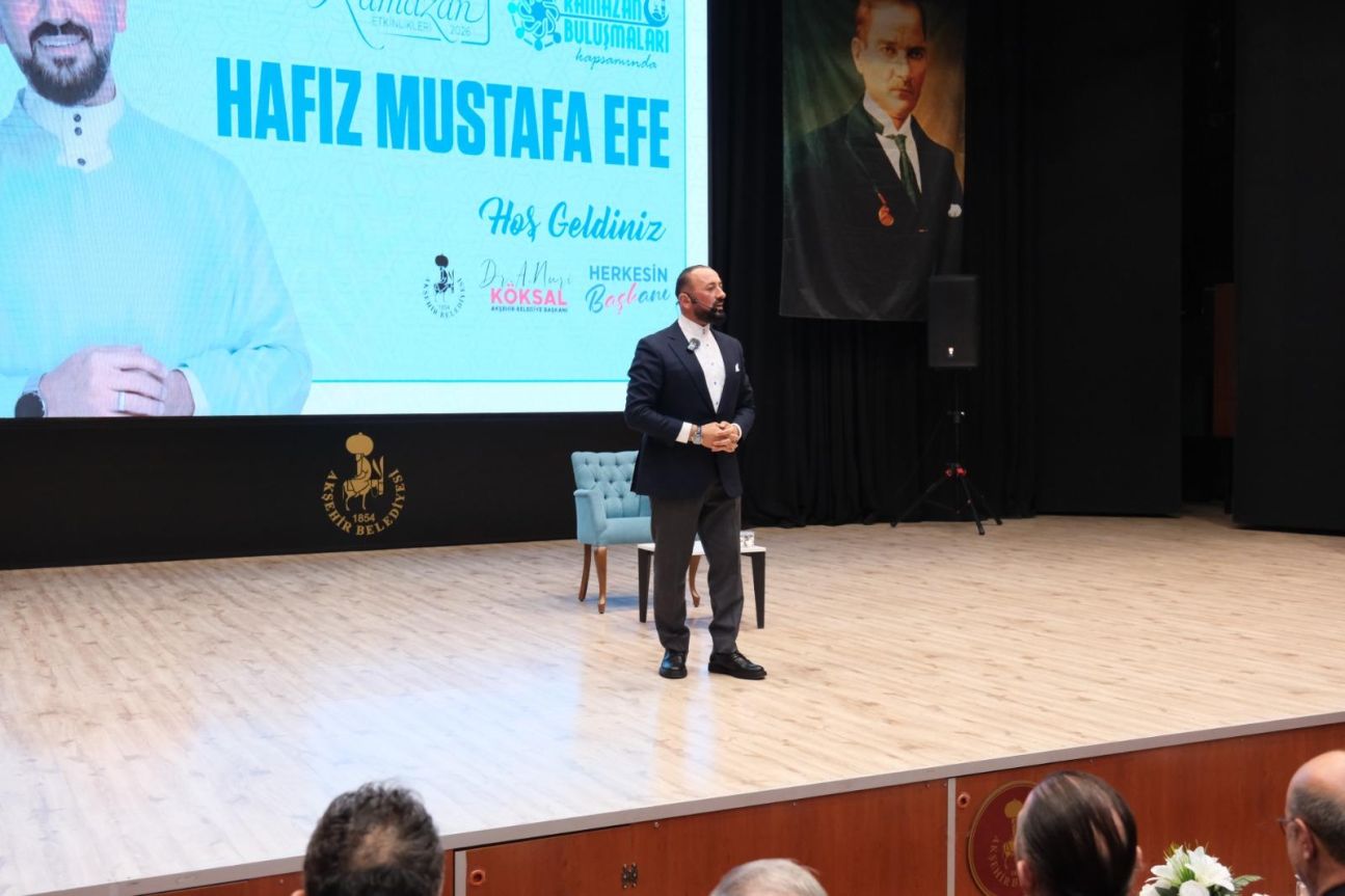 Akşehir Belediyesi tarafından düzenlenen Ramazan Buluşmaları kapsamında gerçekleştirilen programda, Hafız Mustafa Efe Akşehirlilerle bir araya geldi. 13 Mart 2026 Cuma akşamı Akşehir Kültür Merkezi’nde gerçekleşen programda Efe’nin hitabeti ve sohbeti, misafirleri adeta büyüledi.