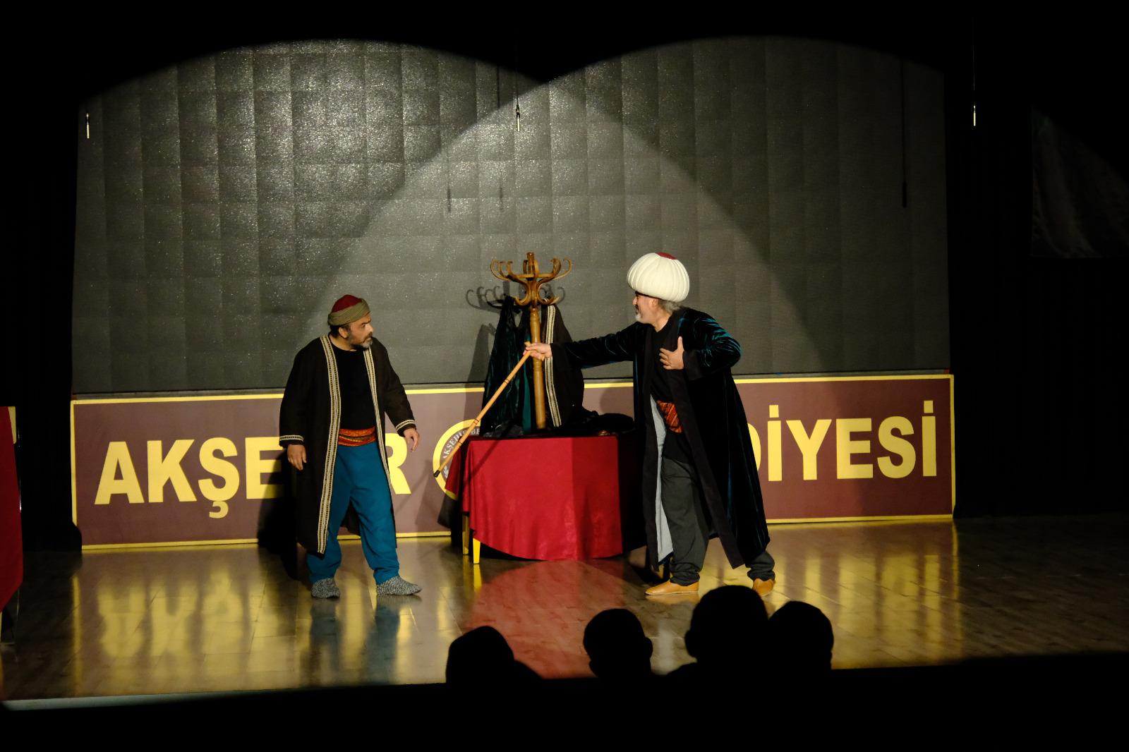 Akşehir Belediyesi tarafından Nasreddin Hoca’nın 741. vefat yılı Anma Günleri kapsamında düzenlenen “Hoca Nasreddin” adlı iki kişilik meddah gösterisi, 14 Kasım 2025 Cuma akşamı Akşehir Kültür Merkezi’nde sahnelendi.