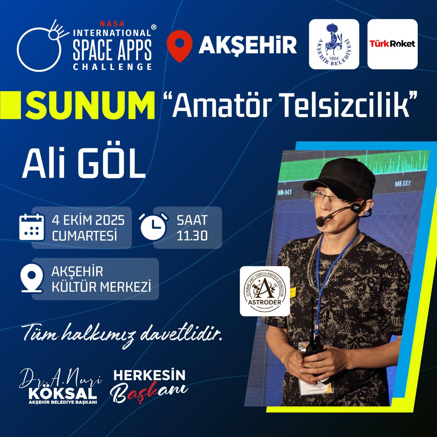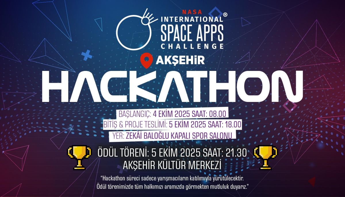 Akşehir, bu yıl dünyanın en büyük bilim ve teknoloji hackathonlarından biri olan NASA International Space Apps Challenge’a ev sahipliği yapıyor. Akşehir Belediyesi’nin stratejik partnerliğiyle gerçekleşecek etkinlik, 3-5 Ekim 2025 tarihlerinde düzenlenecek.
