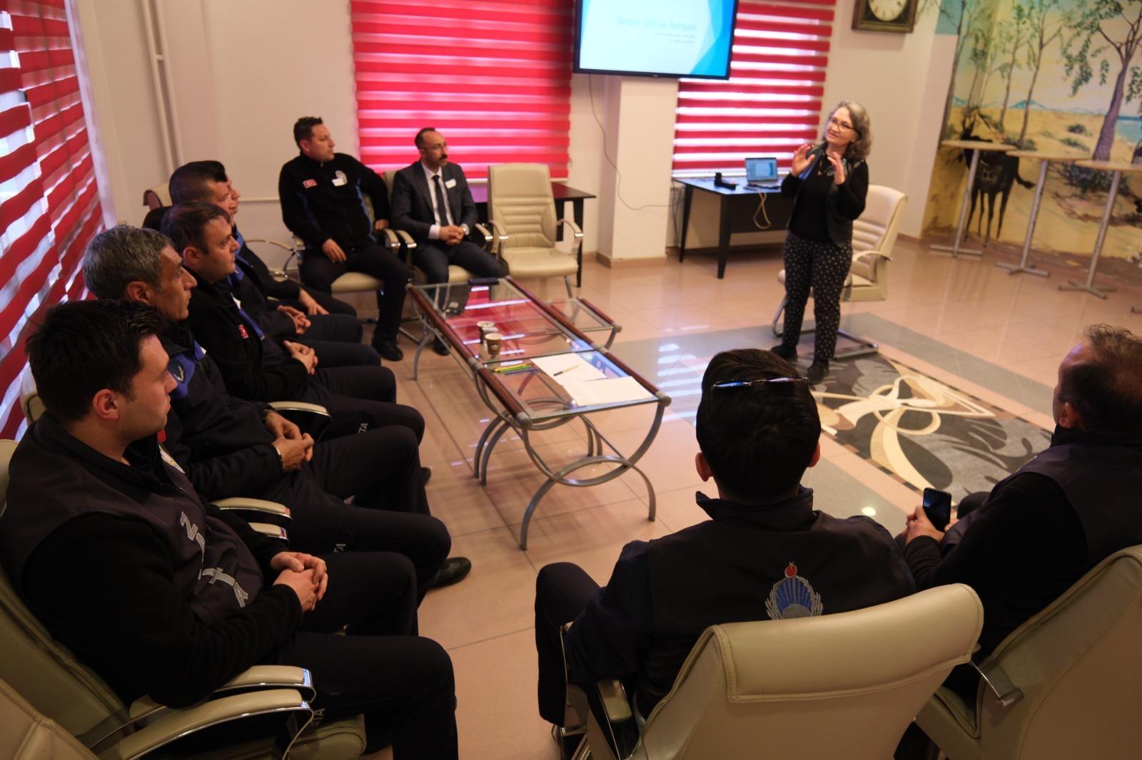 Akşehir Belediyesi, vatandaşla doğrudan temas kuran zabıta ekiplerinin hizmet kalitesini artırmak amacıyla “Etkili İletişim ve Beden Dili” eğitimi düzenledi. Psikolog Zeynep Asuman Dener tarafından verilen eğitimde, teorik bilgilerin yanı sıra uygulamalı atölye çalışmaları da gerçekleştirildi.